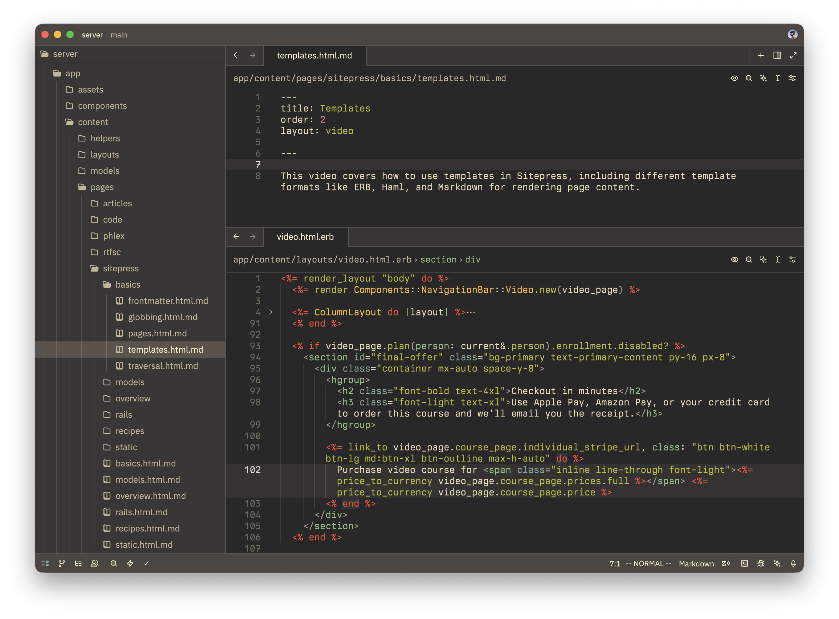 Sitepress manages content as files in your Rails application, making it easy to create and organize pages with frontmatter, templates, and powerful traversal methods. You’ll learn the core concepts that make Sitepress a flexible content management system.